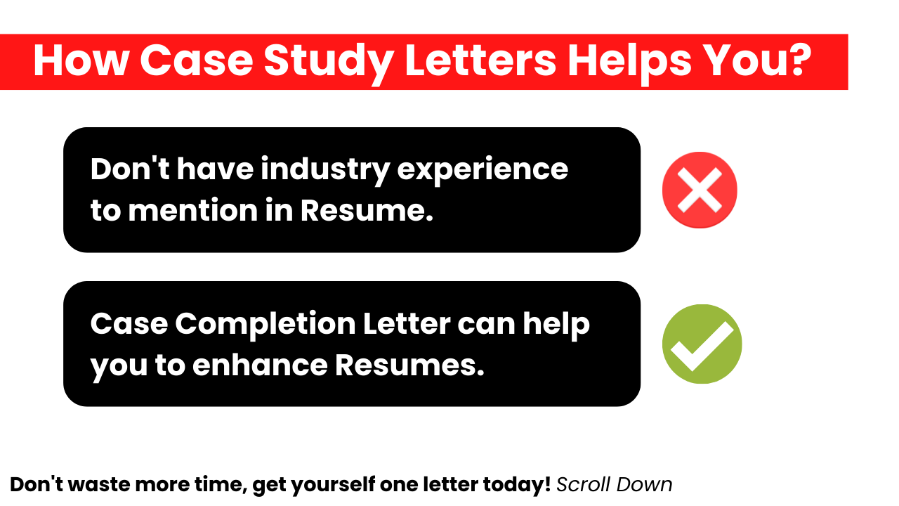 A certification training designed to give you a feel of real world work experience with the help of case study. This training provides you a case competition letter and a training certification which can be included in your resumes and will be counted as work experience.Enroll now